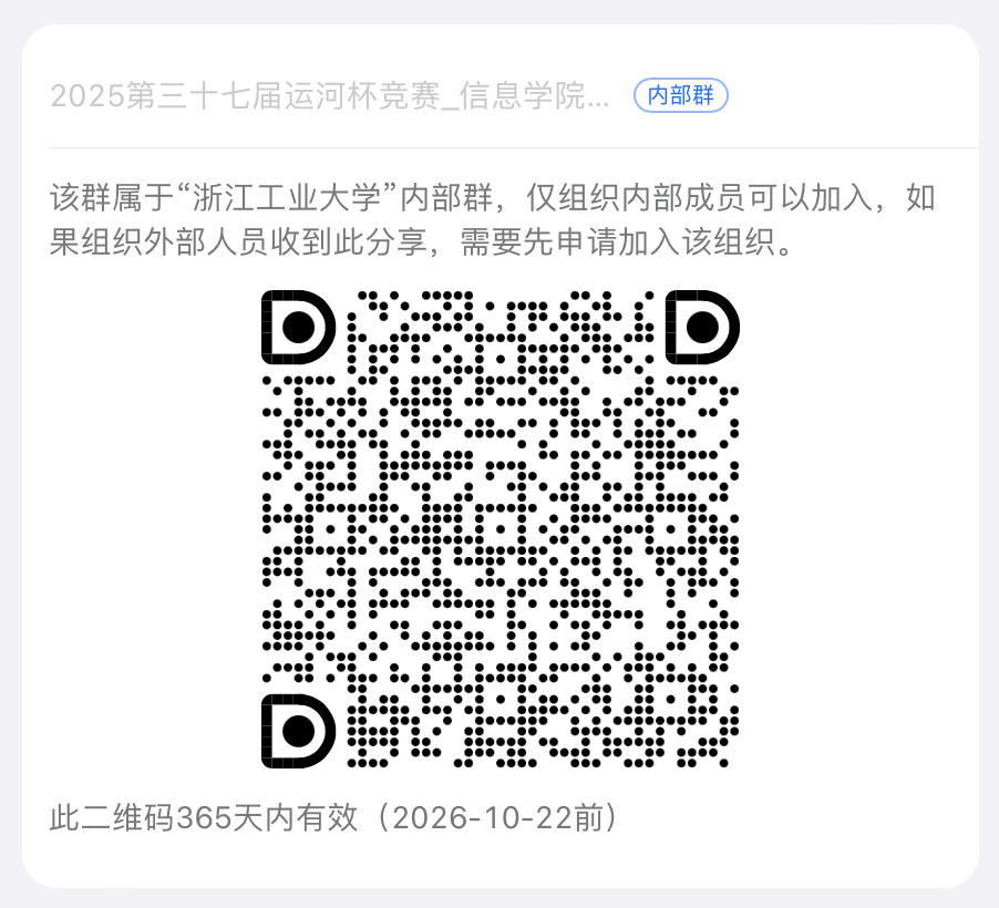 2. 各位参赛选手于11月6日前登录浙江工业大学学生创新创业教育管理系统(http://www.52iec.zjut.edu.cn/#/user/login)—浙江工业大学“运河杯”大学生课外学术科技作品竞赛—浙江工业大学“运河杯”大学生课外学术科技作品竞赛—上传相应作品,并扫码加入钉钉群。