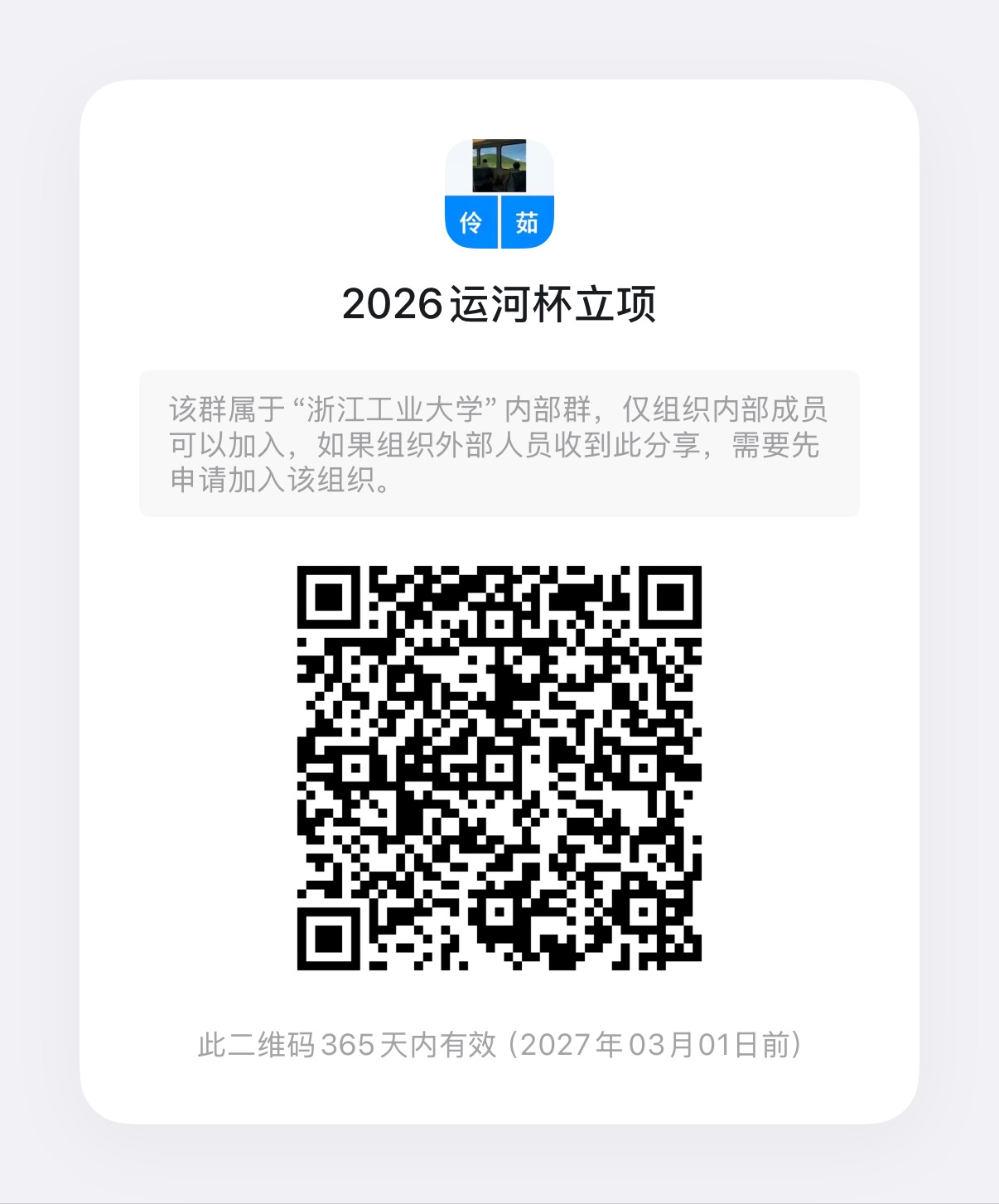1.项目申报需于3月15日24:00前在创新创业教育系统(系统操作方法链接:https://mp.weixin.qq.com/s/S1BN8ygTOA7wD2VsAYjs0w)内填写《浙江工业大学“运河杯”暨建龙基金大学生课外学术科技基金项目立项申请书》,报送学院。其中,项目负责人必须是成员中学历最高人员,项目所有成员合计不超过6人;项目按成员中学历最高成员的学历划分至本科生组、硕士研究生组、博士研究生组;本科生组仅限本科生申报,硕士研究生组允许硕士生申报或本科生与硕士生合作申报,博士研究生组仅限博士生申报;项目成员全部为留学生的划分至留学生组进行专项评审。